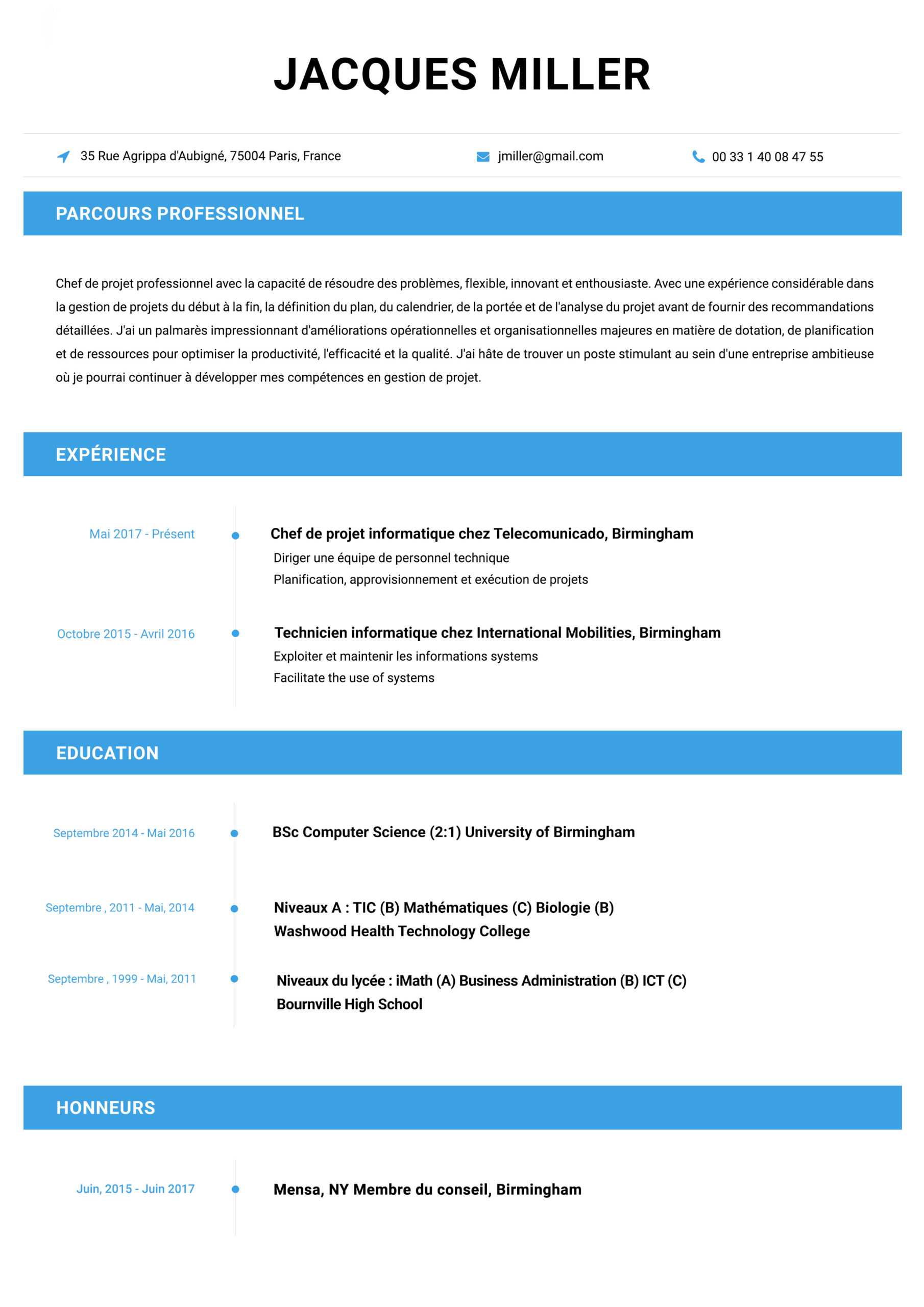 J'ai trouvé ce site Web vraiment très utile car je voulais que mon CV ait l'air super professionnel et accrocheur aussi… Enfin, j'ai pu créer un CV parfait !!!